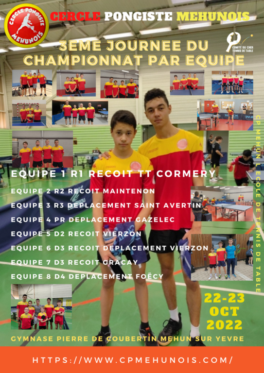 - en D3, CPmehun 6 gagne 16-2 à Vierzon , nous sommes 3ième